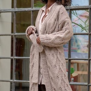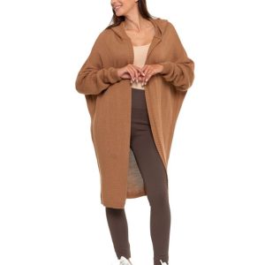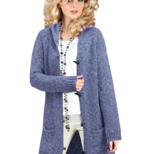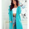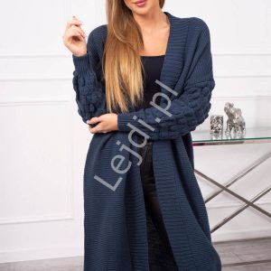 Mikos długi damski sweter wiosna kardigan rozpinany gruby splot płaszcz z kapturem 988 szary
